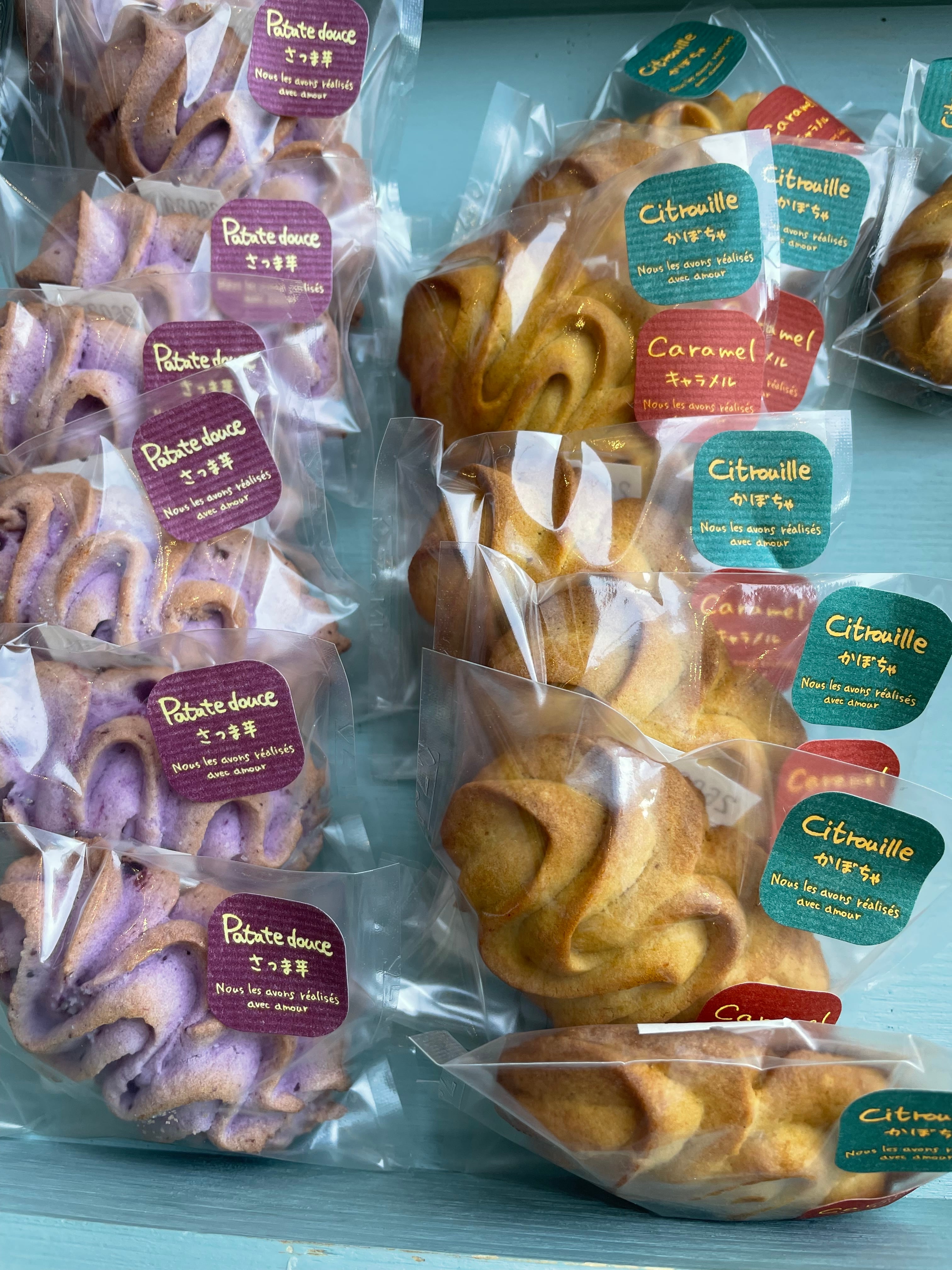 小麦粉・バター・砂糖・卵・紫芋・かぼちゃ・キャラメルソース・バニラペースト・塩