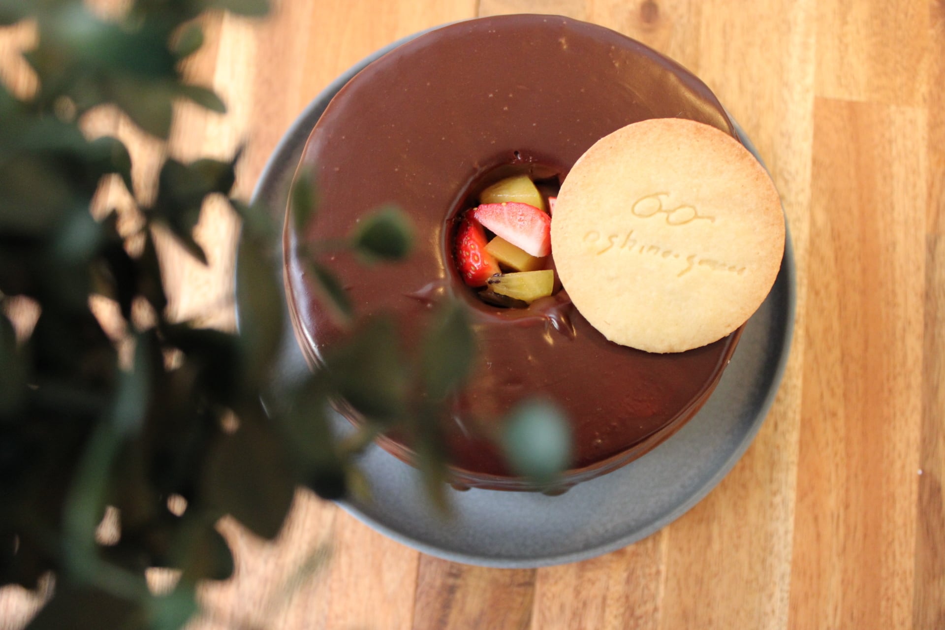 濃厚なガナッシュの下には、とろけるチョコレートクリームとフルーツ